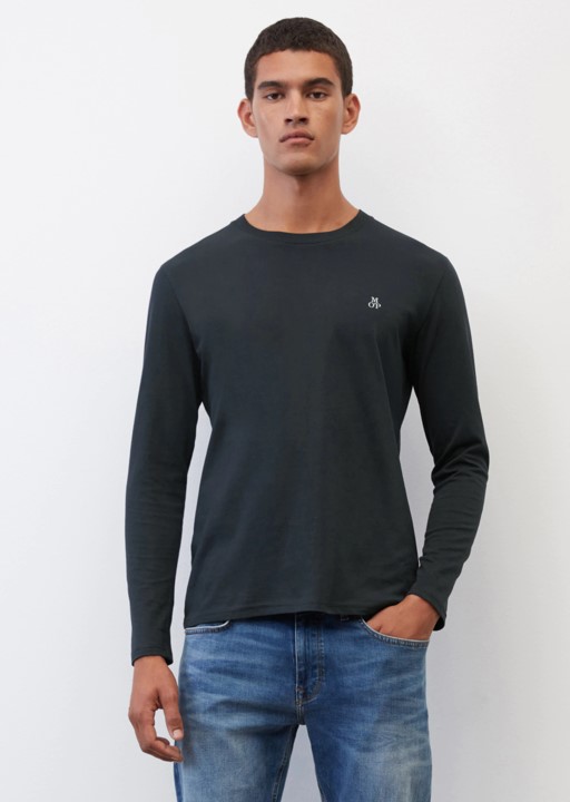 Zeitloses Basic in Premium-Qualität: das hochwertige Longsleeve aus reinem, GOTS-zertifiziertem Organic Cotton. Im maskulinen Shaped Fit mit geripptem Rundhalsausschnitt, langen Ärmeln und gerader Saumlinie. Auf der Brust ist ein kleines Logo angebracht.